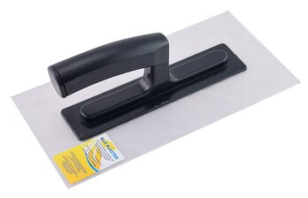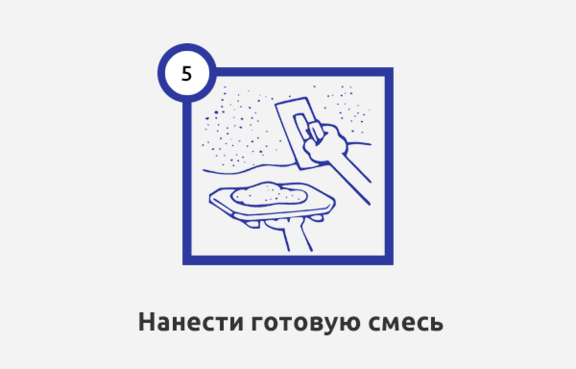 Готовую смесь нанести небольшими порциями пластмассовой тёркой или мастреком. Тёрка должна прилегать к материалу под углом 10–15 градусов, образуя клин. Оптимальная толщина слоя 1,5−2 мм.